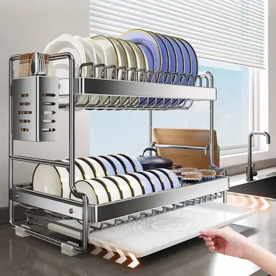 آبچکان استیل دو طبقه بزرگ، یک انتخاب حرفهای و بادوام برای آشپزخانههای مدرن است. طراحی دو طبقه به شما کمک میکند ظروف بیشتری را در کمترین فضا خشک کنید. بدنه از استیل ضدزنگ ساخته شده و در برابر رطوبت و استفاده روزانه مقاومت بالایی دارد.