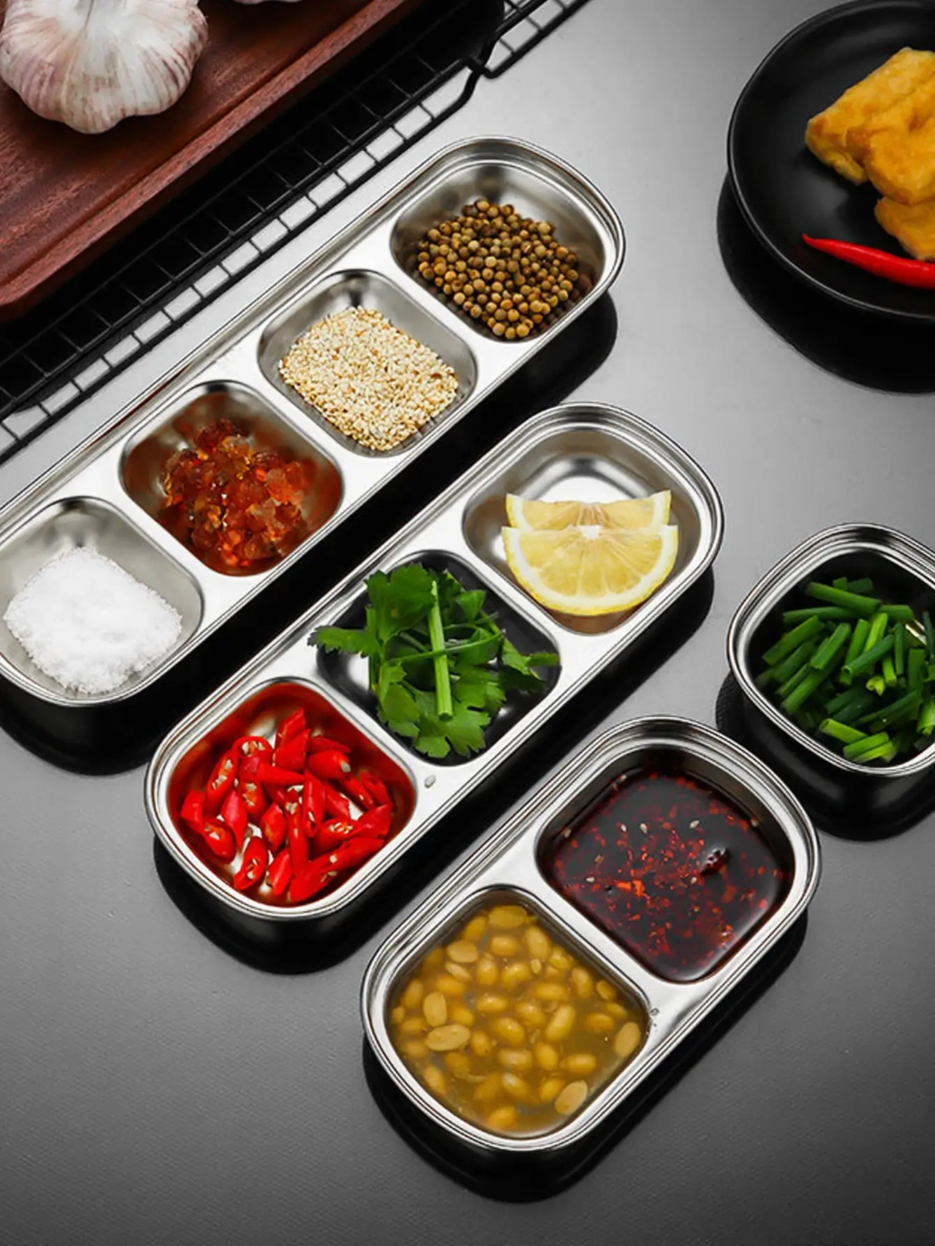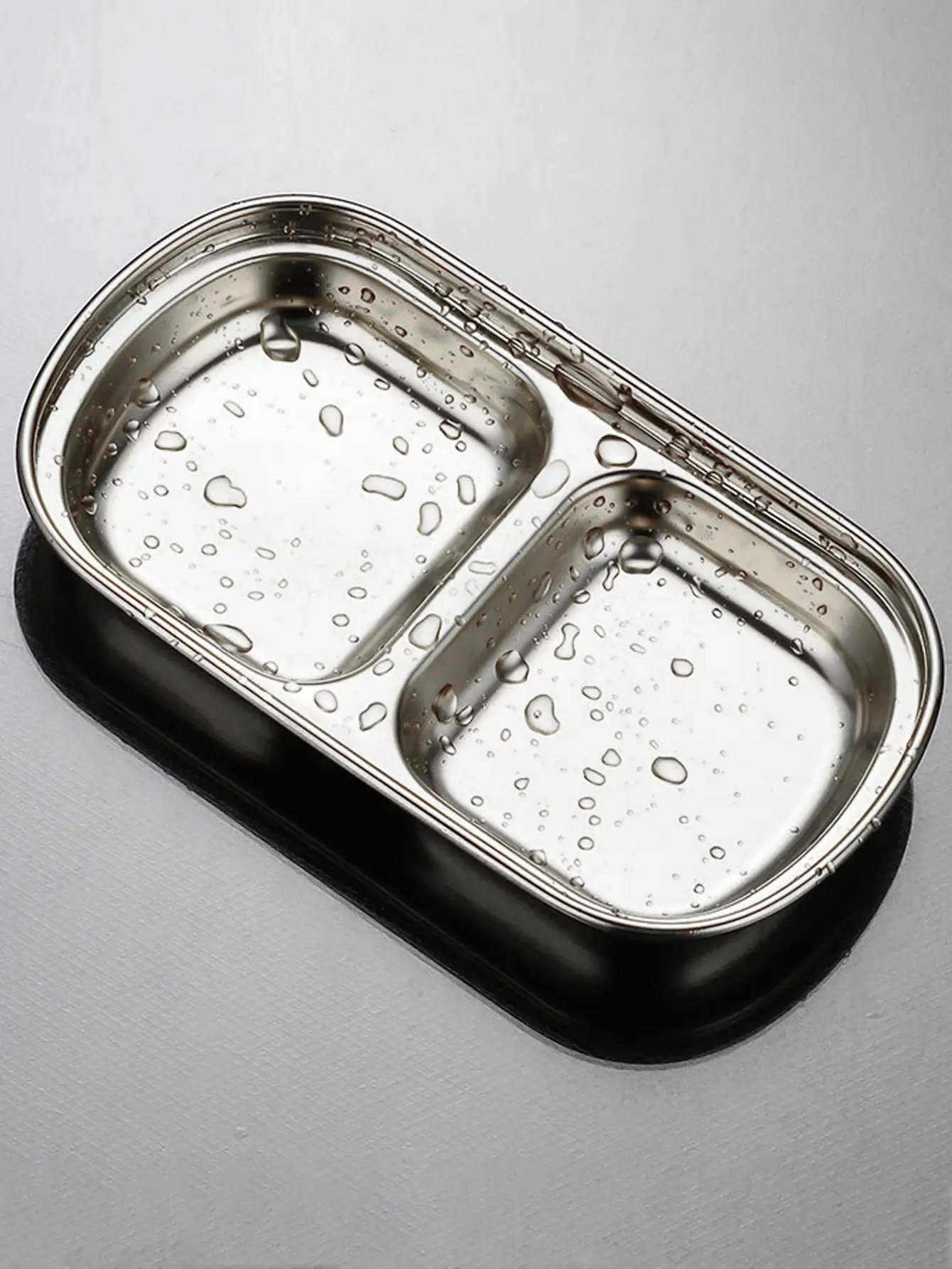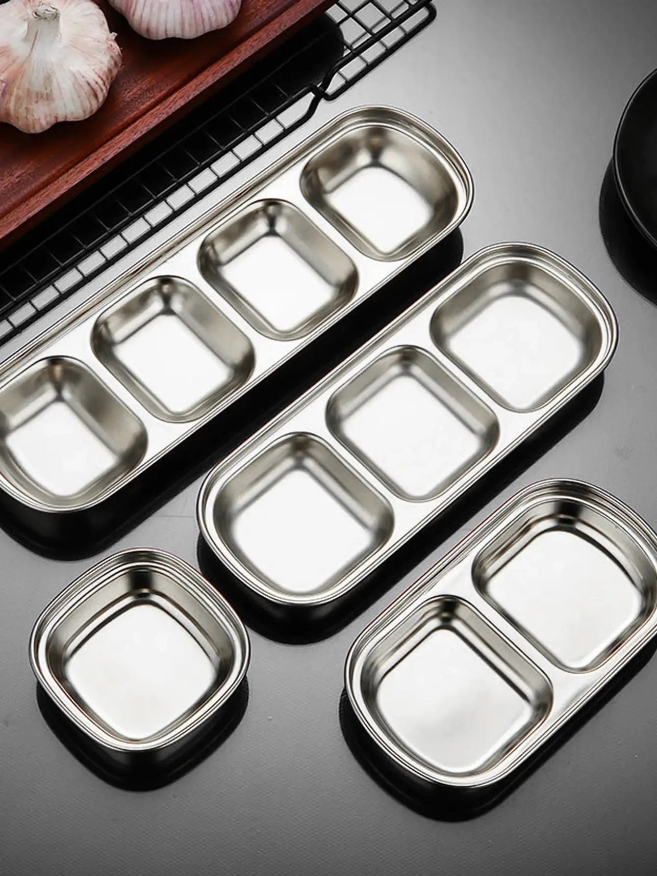 اردو خوری استیل نقره ای چندخانه ، ایدهآل برای سرو انواع سسها، چاشنیها، نمک، سرکه و شکر است. طراحی چندخانه آن امکان تفکیک چاشنیها را فراهم میکند و ظاهر شیک و مدرنش، میز شما را زیباتر میکند. مناسب استفاده در آشپزخانه، مهمانیها و هدیههای کریسمس است. قابل شستشو در ماشین ظرفشویی و نگهداری آسان دارد.