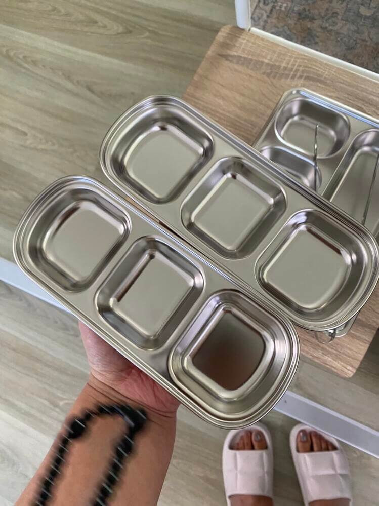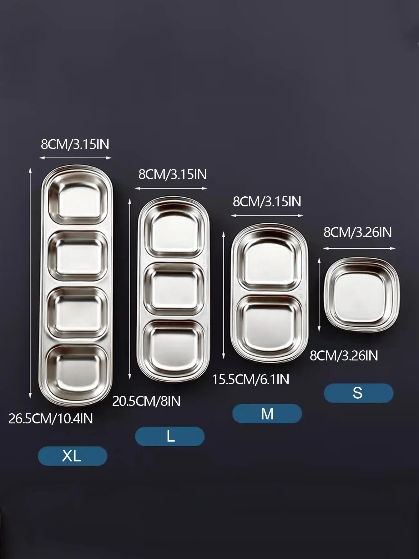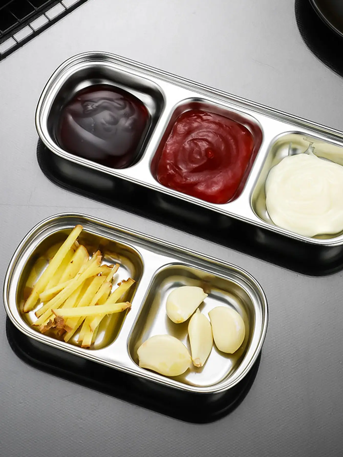 اردو خوری استیل نقره ای چندخانه ، ایدهآل برای سرو انواع سسها، چاشنیها، نمک، سرکه و شکر است. طراحی چندخانه آن امکان تفکیک چاشنیها را فراهم میکند و ظاهر شیک و مدرنش، میز شما را زیباتر میکند. مناسب استفاده در آشپزخانه، مهمانیها و هدیههای کریسمس است. قابل شستشو در ماشین ظرفشویی و نگهداری آسان دارد.