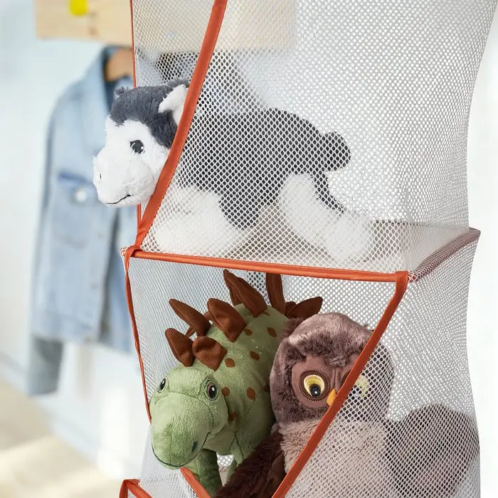 ارگانایزر آویز کودک ایکیا سبک و تاشو با ۵ محفظه مجزا که نظمدهی به وسایل کودک را ساده و جذاب میکند. پارچه توری نیمهشفاف باعث میشود محتویات هر بخش بهراحتی دیده شود.