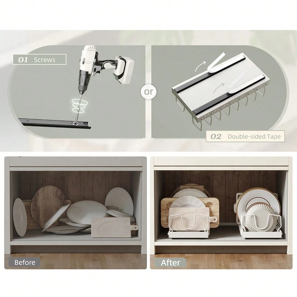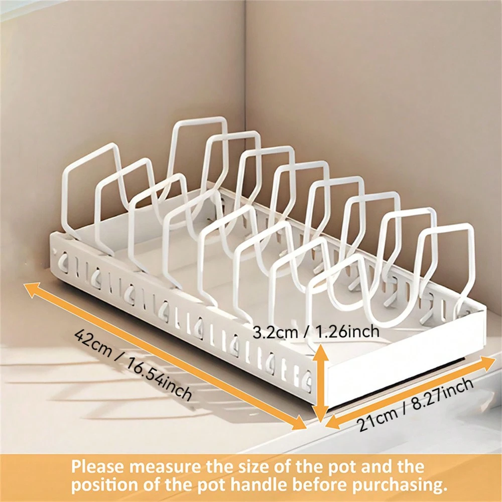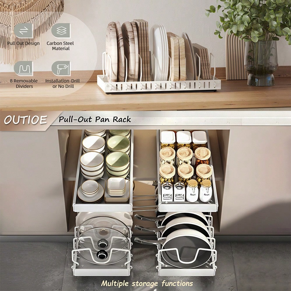 این ارگانایزر کشویی قابلمه و تابه داخل کابینت، بهترین راهحل برای نظم دادن به قابلمهها، تابهها، درب قابلمه و انواع ظروف آشپزخانه است.