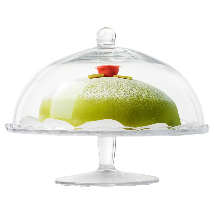 استند کیک و شیرینی مدل ARV BROLLOP از برند IKEA، با طراحی ساده و شفاف، انتخابی ایدهآل برای پذیرایی در مهمانیها، تولدها و مجالس خاص است. این استند از شیشه مقاوم ساخته شده و دارای درب شیشهای جهت محافظت از طراوت کیک، شیرینی یا دسر میباشد. ظاهر کلاسیک و ابعاد مناسب آن (۲۹ سانتیمتر) باعث میشود که هم در خانه و هم در کافهها یا مجالس رسمی مورد استفاده قرار گیرد.
