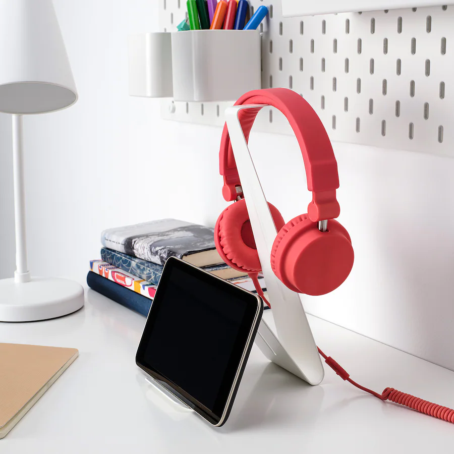 استند موبایل و تبلت ایکیا MOJLIGHET سفید مناسب برای قرار دادن هدفون ، تلفن همراه و تبلت در قفسه کتاب یا روی میز.