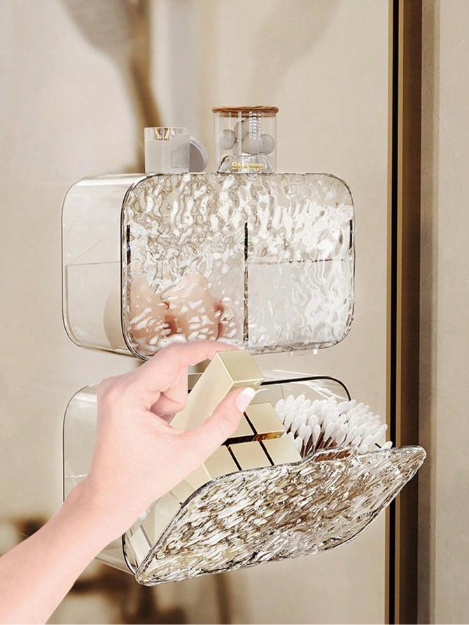 باکس دیواری چسبی سرویس بهداشتی شفاف با طراحی مدرن و جنس مقاوم PET، انتخابی ایدهآل برای نظمدهی لوازم آرایشی، پدهای آرایش، گوشپاککن، یا لوازم بهداشتی در سرویس بهداشتی و اتاق خواب است.