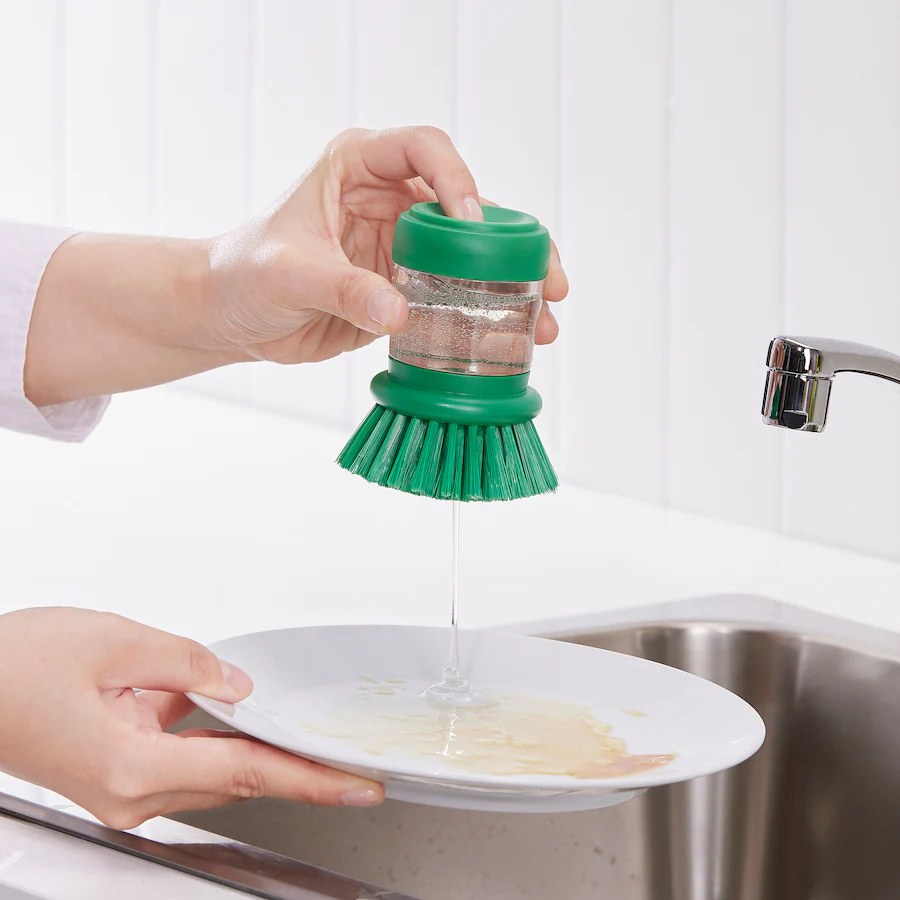 یک فشار سبک در بالای برس تنها چیزی است که برای پخش مستقیم مایع ظرفشویی روی ظروف کثیف شما لازم است.
