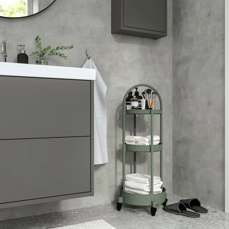 ترولی JUTTERSBO با طراحی جمعوجور و رنگ خاص خاکستری-سبز، انتخابی عالی برای خانههای مدرن و مینیمال است. با سه طبقه جادار و چرخهای روان، این ترولی برای استفاده در آشپزخانه، حمام، اتاق کار یا حتی بهعنوان میز کنار مبلی کاربرد دارد. هم ظاهر زیبا دارد، هم بسیار کاربردی است.