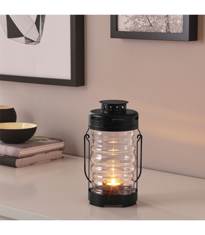 فانوس مشکی ایکیا ایده آل برای استفاده رومیزی و آویزان شدن در مناسبت ها.