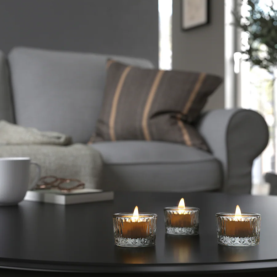 جاشمعی کریستال سه عددی ایکیا SMÄLLSPIREA با طراحی خاص و جذاب مناسب برای شمع های وارمر
