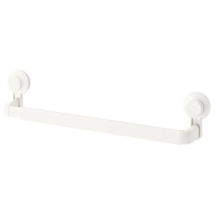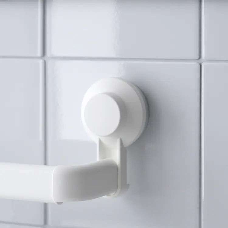 جا حولهای چسبی ایکیا TISKEN سفید یک راهکار ساده، شیک و کاربردی برای آویزان کردن حوله در حمام و سرویس بهداشتی است. این محصول با سیستم مکنده (وکیومی) و بدون نیاز به سوراخکاری یا دریل، بهراحتی روی سطوح صاف مانند کاشی، شیشه و سرامیک نصب میشود.