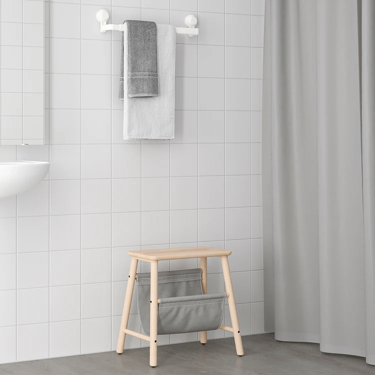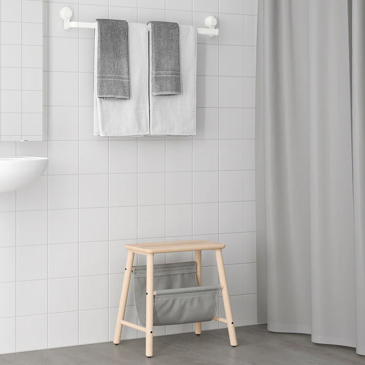 رنگ سفید و طراحی مینیمال ایکیا باعث میشود این جا حولهای بهخوبی با انواع دکوراسیون حمام هماهنگ شود و فضای مرتبتری ایجاد کند.