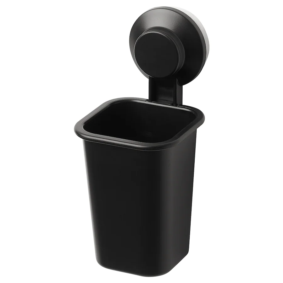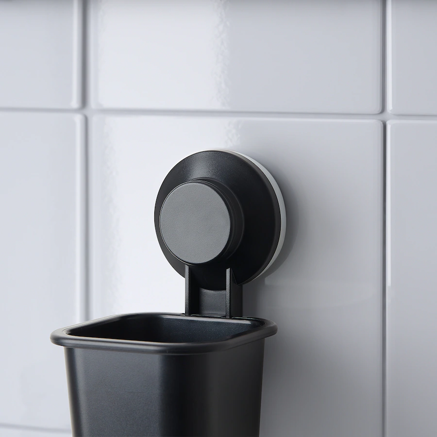 جا مسواکی چسبی ایکیا مشکی TISKEN با فنجان های مکنده محکم سطوح صاف مانند شیشه یا کاشی را رها نمی کنند – مگر اینکه شما بخواهید.