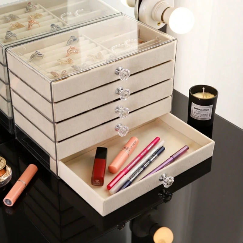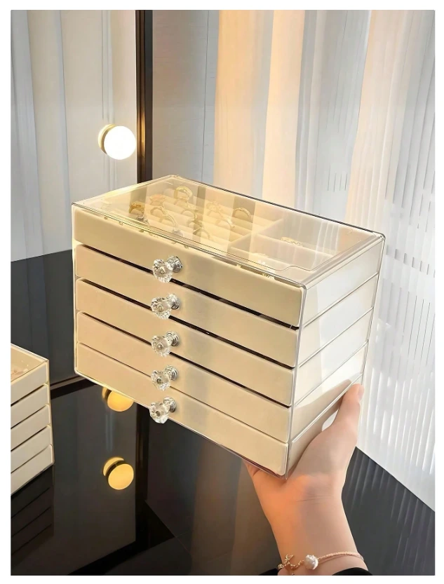 جعبه جواهر کشویی ترکیبی از طراحی شفاف آکریلیک (PMMA) و آستر مخملی ظریف است که جلوهای شیک و منظم به کلکسیون جواهرات شما میبخشد.