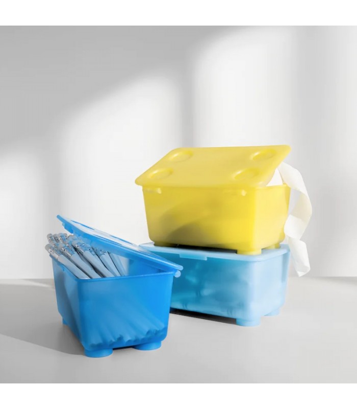 همچنین این باکس کوچک رنگی می تواند روی هم قرار گیرد تا جای کمتری را اشغال کند.