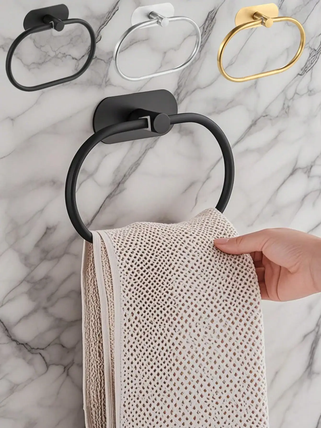 این حلقه حوله چسبی استیل، یک آویز مدرن و کاربردی برای حمام و سرویس بهداشتی است که بدون نیاز به سوراخکاری نصب می‌شود.