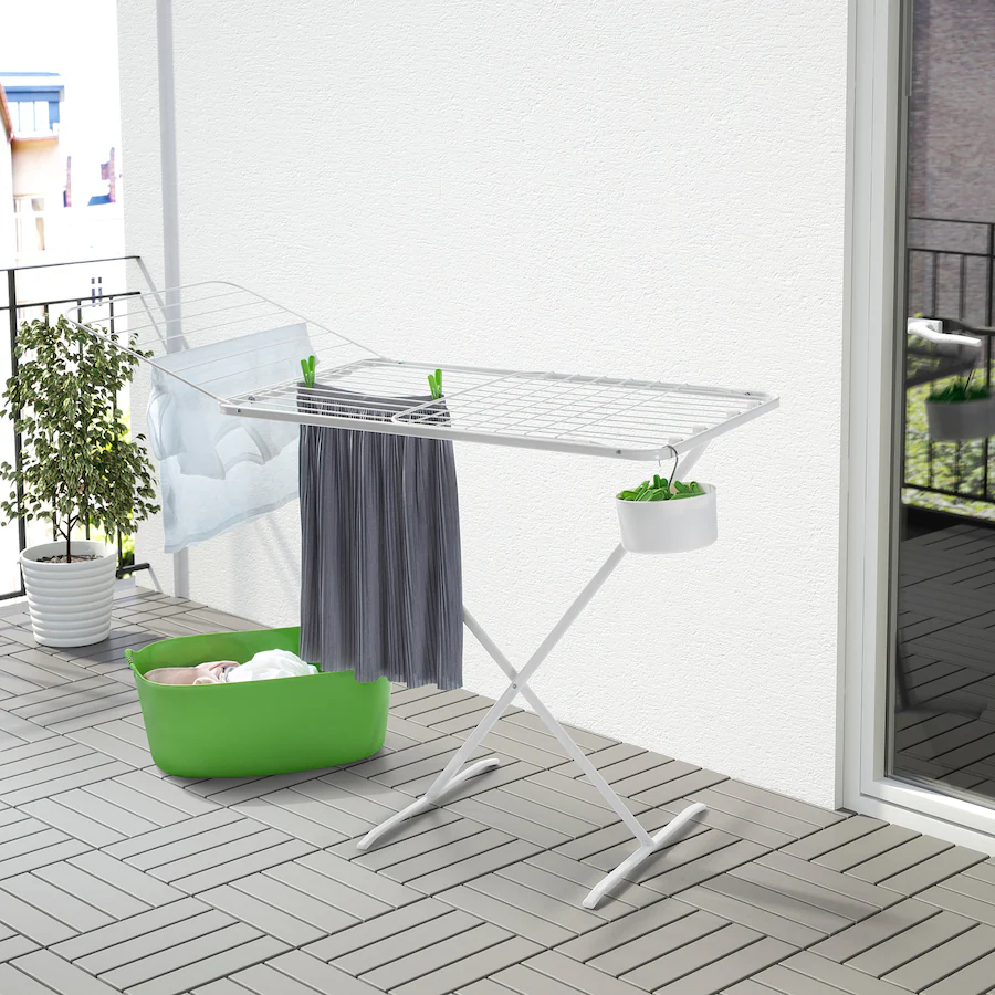 این رخت آویز دارای دو بال است که تا میشوند و فضای زیادی برای لباسهای شسته شده و 4 قلاب برای آویزان کردن وسایل کوچکتر به شما میدهد.