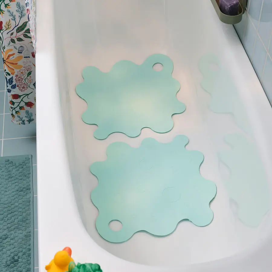 زیرانداز وان ایکیا مدل TRAMPSJÖN یک راهحل ساده و مؤثر برای جلوگیری از لیز خوردن در حمام و وان است. با طراحی مربعی و رنگ آرامشبخش فیروزهای روشن، علاوهبر افزایش ایمنی، جلوهای تمیز و مدرن به فضای حمام میدهد.