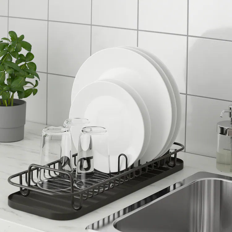 به لطف طراحی هوشمندانه ظروف، لیوان، لیوان و کارد و چنگال همگی می توان روی ست آبچکان قرار داد.