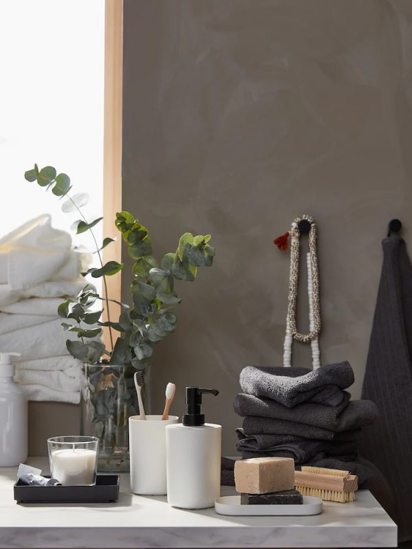 ست سرویس بهداشتی ایکیا STORAVAN شامل جا مسواک ، جا مایعی و صابون است که با طراحی تمیز و ساده با اکثر سبک ها هماهنگ است.