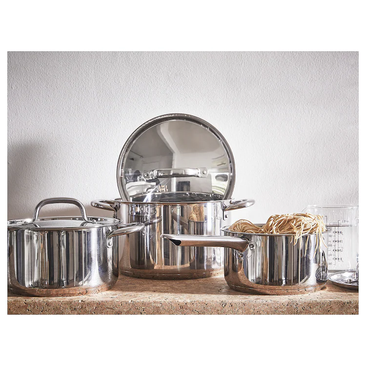 اگر به دنبال یک ست قابلمه بادوام، زیبا و همهکاره هستید، ست ۶ تکه استیل IKEA 365+ انتخابی عالی است. طراحی حرفهای و کیفیت ساخت بالا، این سرویس را برای استفاده روزمره و حتی آشپزی پیشرفته مناسب کرده است. از جنس استیل ضدزنگ ساخته شده و دارای دربهای شیشهای مقاوم به حرارت است. این سرویس قابلمه برای تمامی انواع اجاقها، حتی اجاق القایی، مناسب بوده و همچنین قابلیت شستشو در ماشین ظرفشویی را دارد.