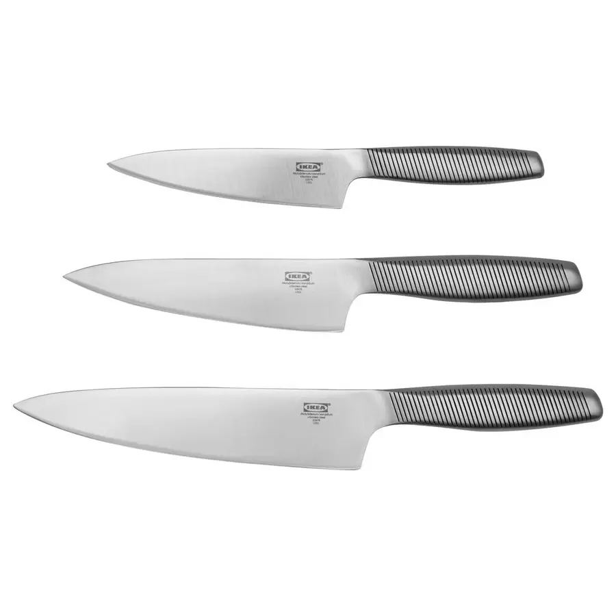 ست چاقوی آشپزخانه استیل IKEA 365+ شامل سه چاقوی پرکاربرد برای آشپزخانه است: یک چاقوی سرآشپز، یک چاقوی نان، و یک چاقوی همهکاره. این ست با طراحی ارگونومیک و تیغه استیل ضدزنگ باکیفیت، برای استفاده روزانه طراحی شده و عملکرد برشی عالی را با دوام طولانیمدت ترکیب میکند. یک انتخاب هوشمندانه برای هر آشپزخانه مدرن.