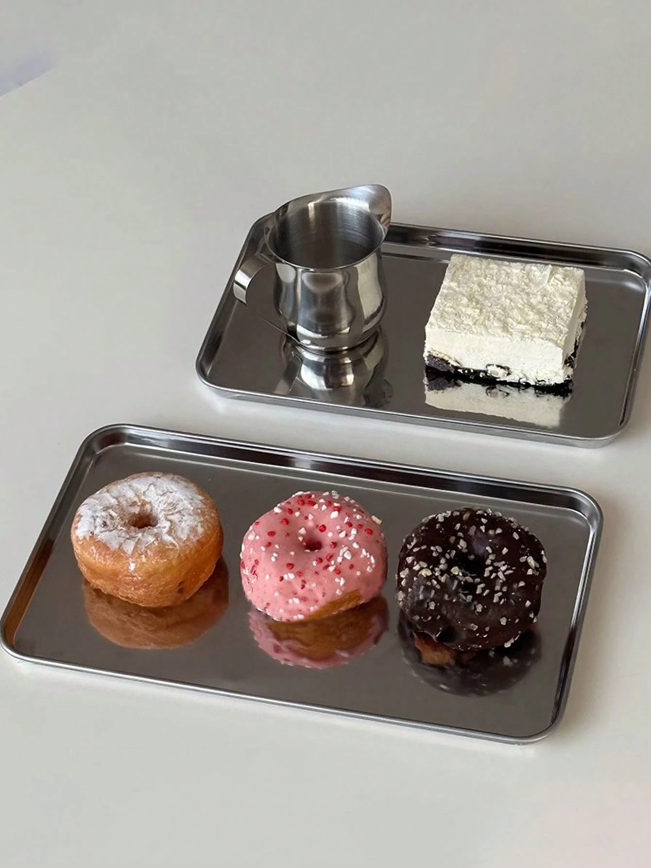 سینی استیل مستطیلی با طراحی چندمنظوره، مناسب سرو انواع کیک، دیم سام، خوراکیها، جواهرات و لوازم کوچک است. طراحی به سبک هنگکنگ، جلوهای شیک و مدرن به میز شما میدهد.