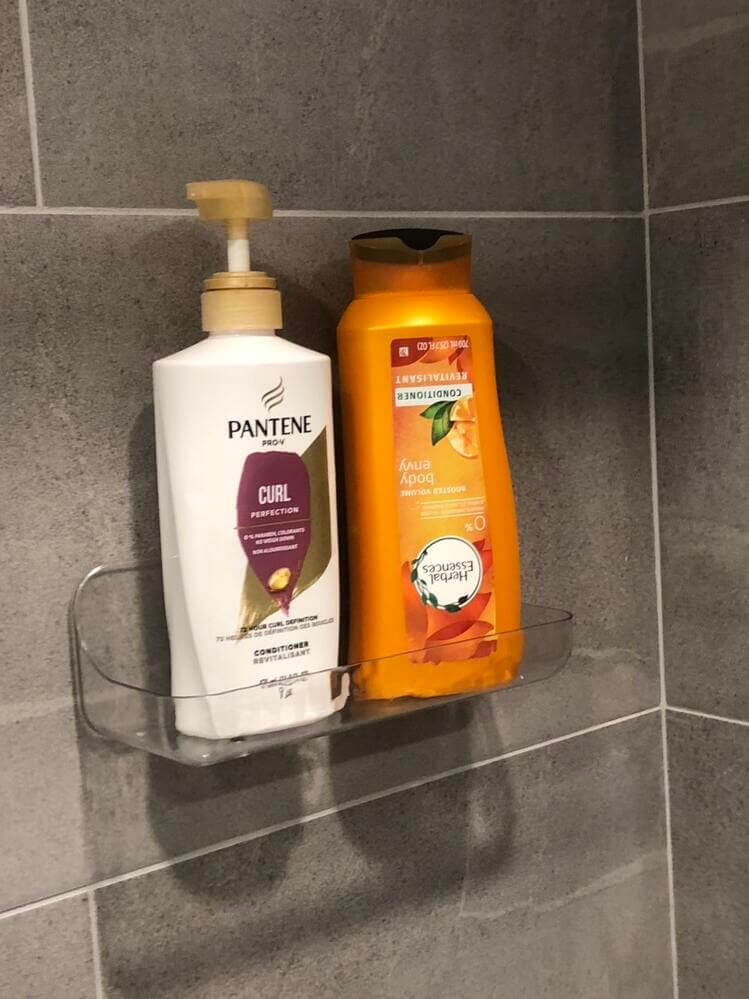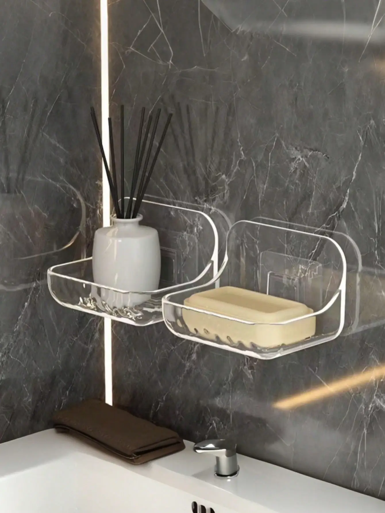 شلف حمام شفاف چسبی کاملاً ضدآب بوده و تحمل وزن بالایی دارد. این شلف برای نگهداری شامپو، صابون، مواد شوینده، لوازم آرایشی و وسایل روزمره بسیار مناسب است و باعث صرفهجویی در فضا میشود.