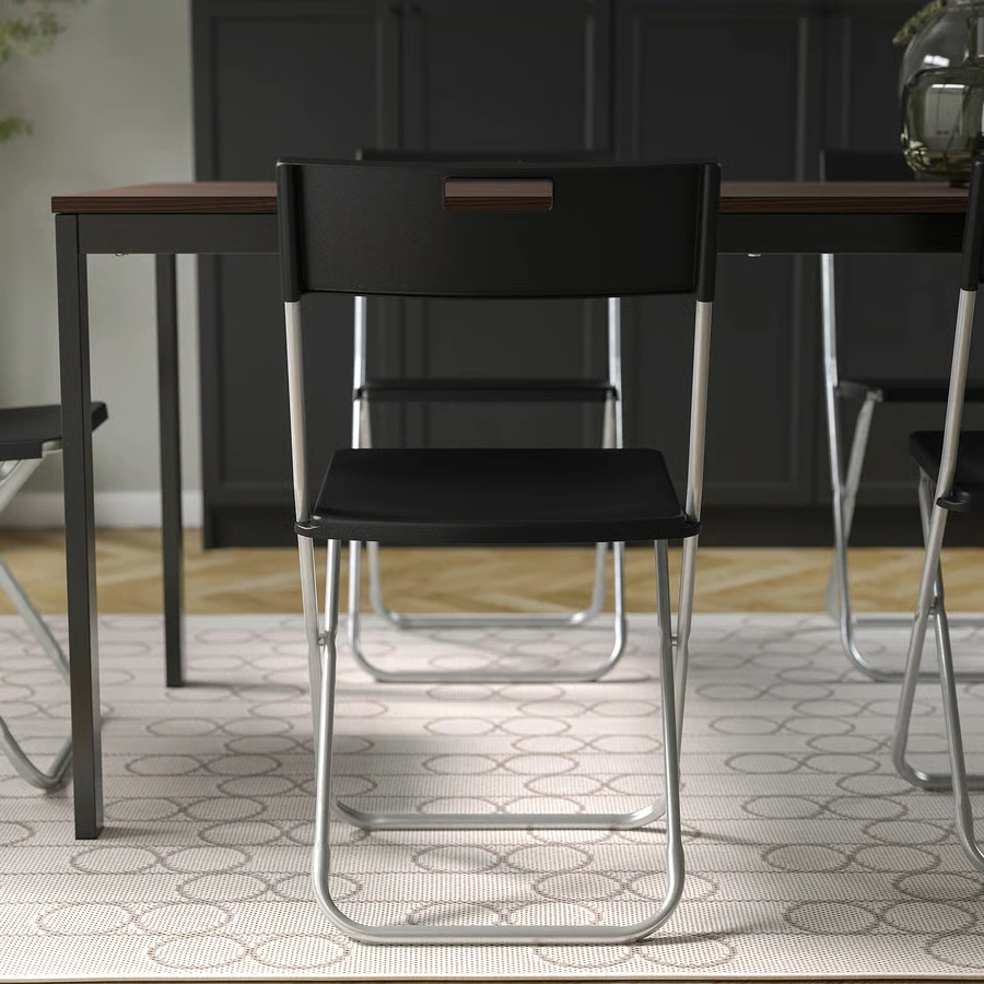 صندلی تاشو GUNDE از برند ایکیا، انتخابی هوشمندانه برای فضاهای کوچک و موقعیتهایی است که نیاز به صندلی اضافه دارید. طراحی ساده، وزن سبک و قابلیت تاشو بودن، این صندلی را به گزینهای ایدهآل برای بالکن، آشپزخانه، مهمانیها و حتی سفر تبدیل کرده است. رنگ مشکی کلاسیک، ظاهر مدرن و هماهنگ با دکورهای مختلف را فراهم میکند. این صندلی همچنین دارای قفل ایمنی برای جلوگیری از جمعشدن ناگهانی است.