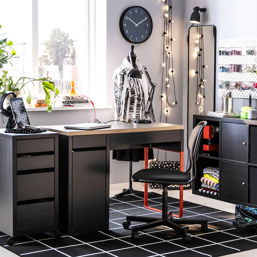 صندلی چرخدار مشکی ایکیا ÖRFJÄLL دارای جک می باشد و ارتفاع صندلی قابل تنظیم است.