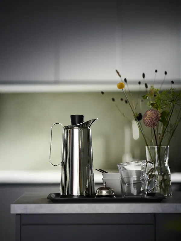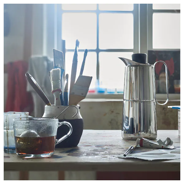 فلاسک وکیوم استیل ایکیا با حجم 1.2 لیتر نوشیدنی را برای مدت طولانی سرد یا گرم نگه می دارد.