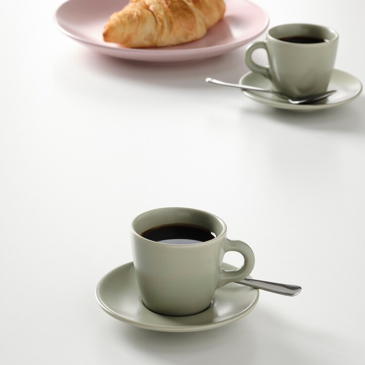 فنجان نعلبکی FÄRGKLAR با حجم 70cc و رنگ سبز دارای طراحی ساده، پایه ای عالی برای هماهنگی با سایر ظروف غذاخوری است.