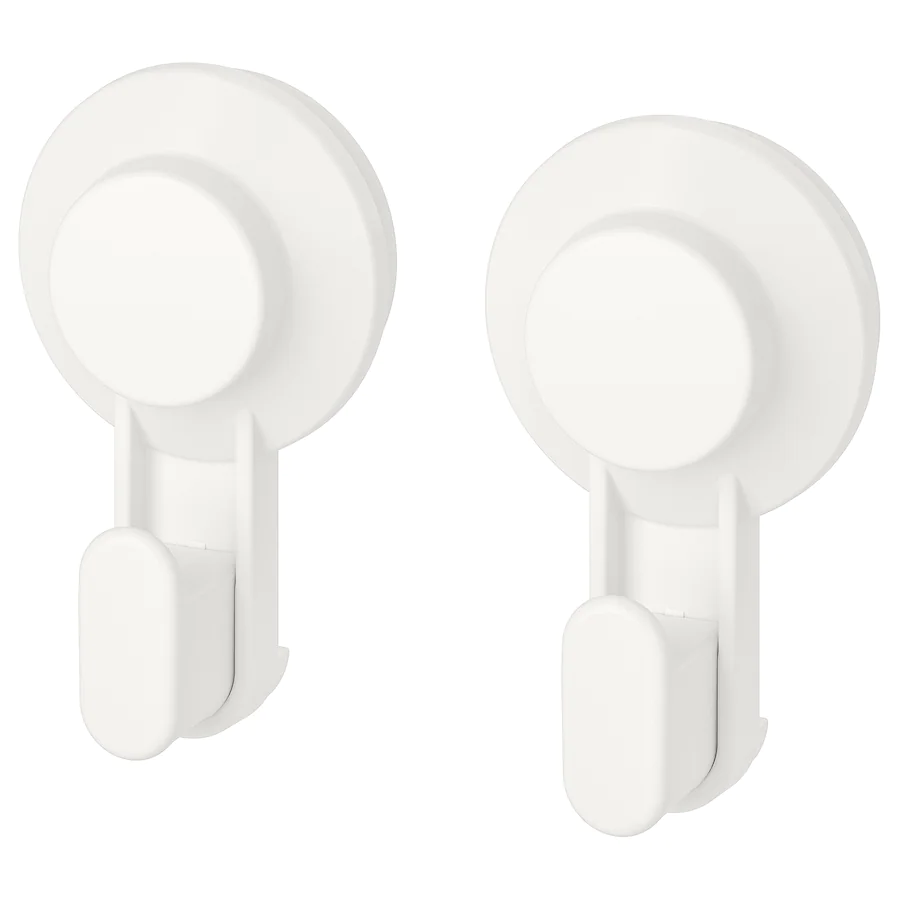 قلاب آویز حوله چسبی ایکیا TISKEN سفید یک راهحل ساده و کاربردی برای آویزان کردن حوله، لیف، اسفنج و لوازم سبک حمام است. این قلاب با سیستم مکنده (وکیومی) و بدون نیاز به سوراخکاری، بهراحتی روی سطوح صاف مانند کاشی، شیشه و سرامیک نصب میشود.