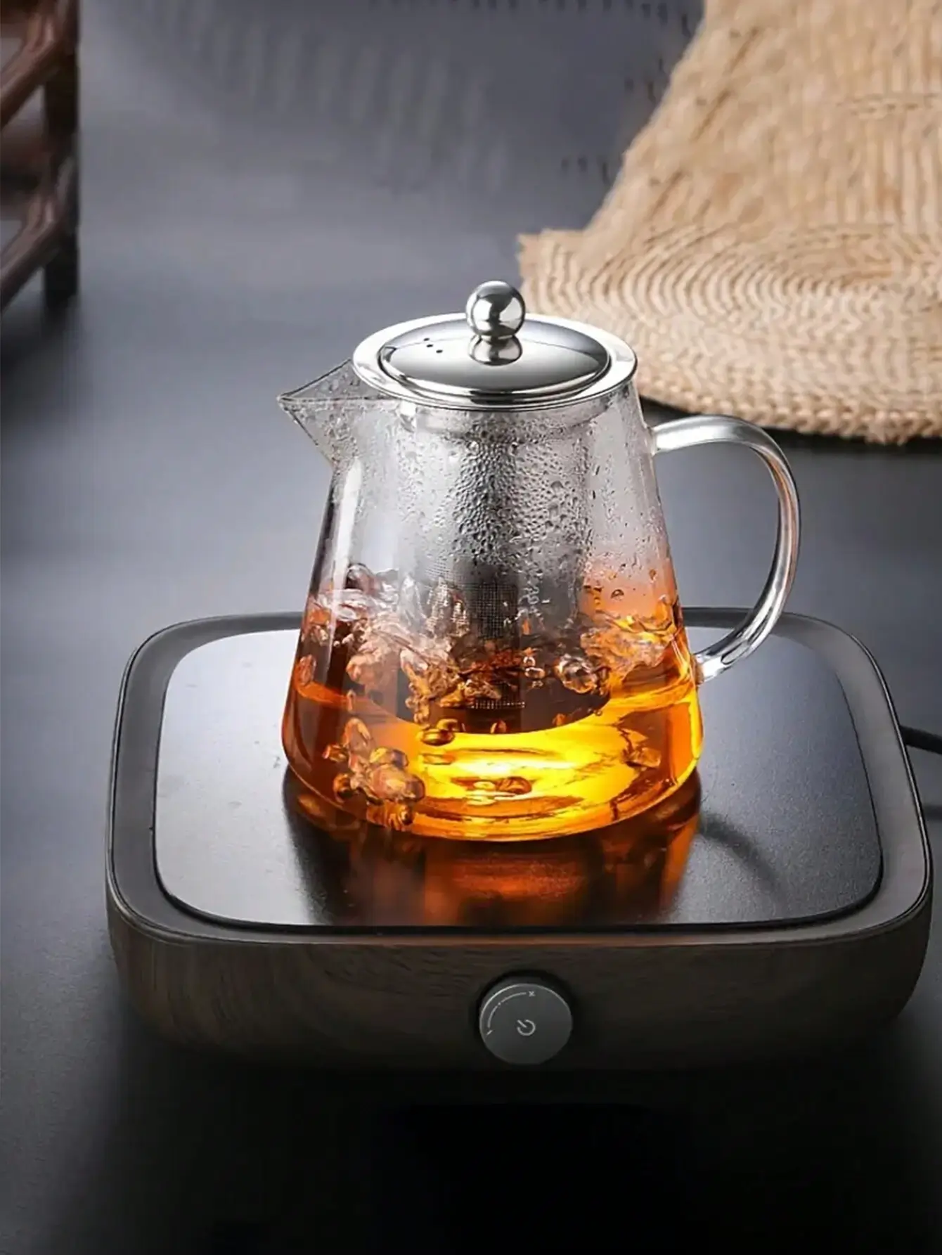 این قوری شیشهای با صافی استیل ضدزنگ طراحی شده و کاملاً مقاوم در برابر حرارت است؛ مناسب دمکردن انواع چای، دمنوش، گیاهان خشک و نوشیدنیهای گرم و سرد.