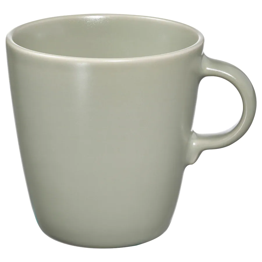 ماگ سبز مات ایکیا FÄRGKLAR با طراحی ساده و زیبا، برای هماهنگی با سایر ظروف غذاخوری.