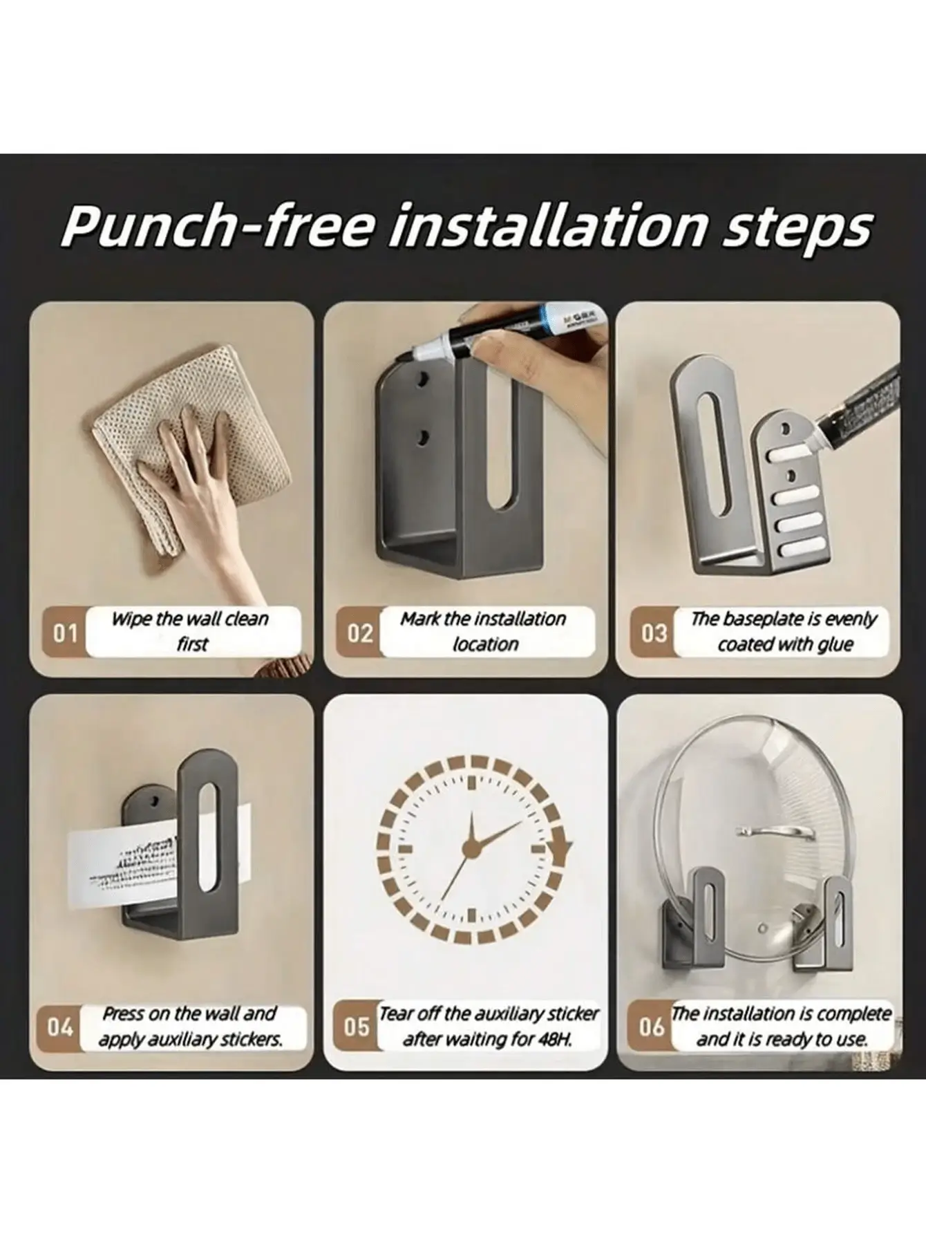 نگهدارنده درب قابلمه بدون نیاز به دریل و پیچکاری نصب میشود؛ فقط کافیست آن را روی لبه کابینت قرار دهید. جنس محصول از فولاد کربنی (Carbon Steel) است؛ کاملاً مقاوم، ضدزنگ و مناسب استفاده روزمره در محیطهای مرطوب مثل آشپزخانه.