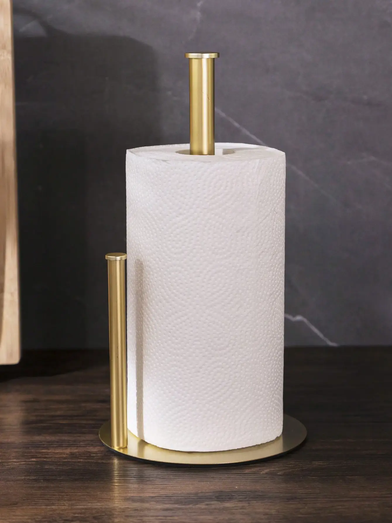 پایه دستمال کاغذی رومیزی طلایی، یک استند شیک و مقاوم برای آشپزخانه است که با بدنه استیل ضدزنگ و پایه سنگین طراحی شده تا هنگام کشیدن دستمال، تکان نخورد و نیفتد.