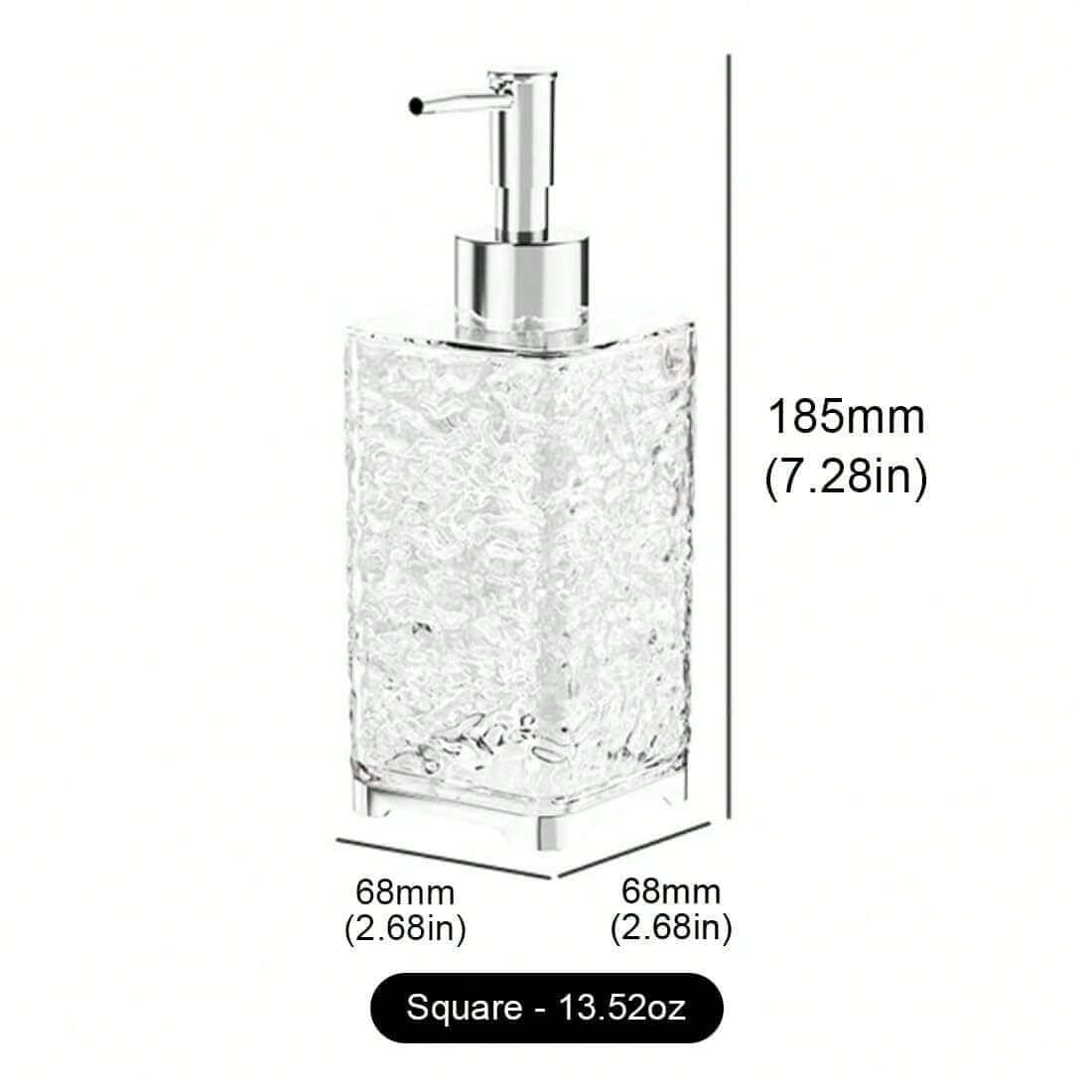 پمپ مایع دستشویی کریستالی ساختهشده از متریال مقاوم PET، مناسب برای انواع مایع دستشویی، شامپو، مایع ظرفشویی و ضدعفونیکننده دست است.