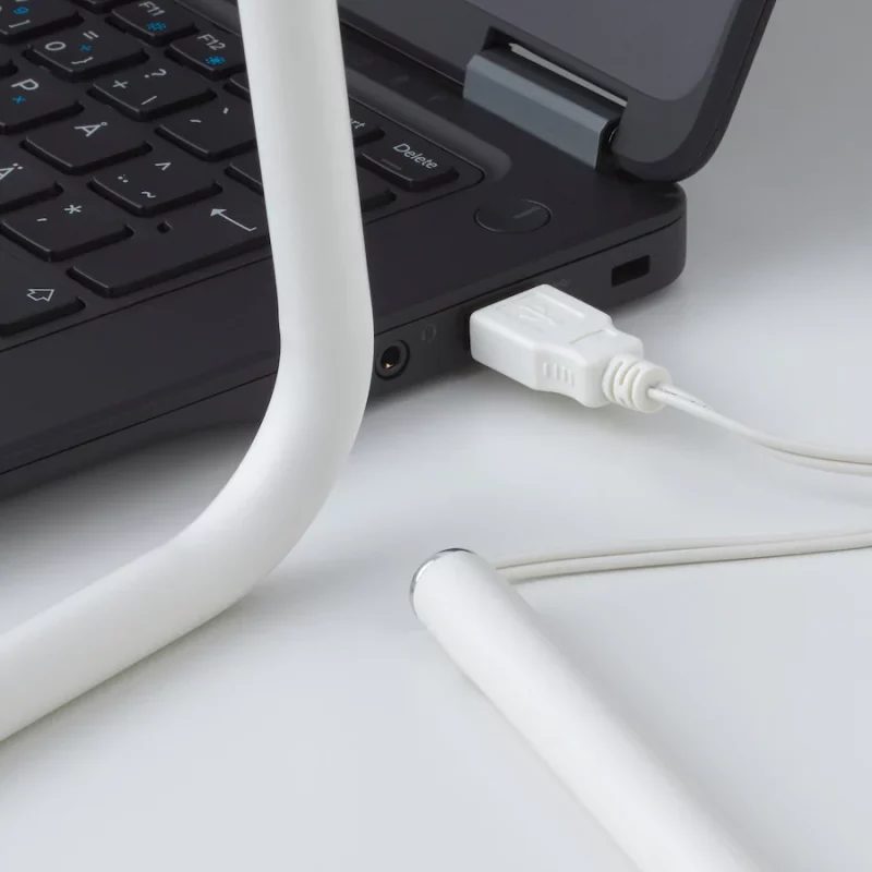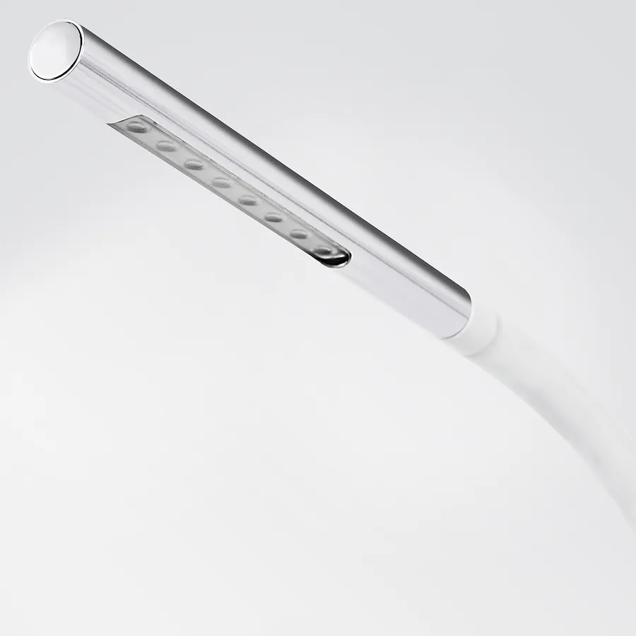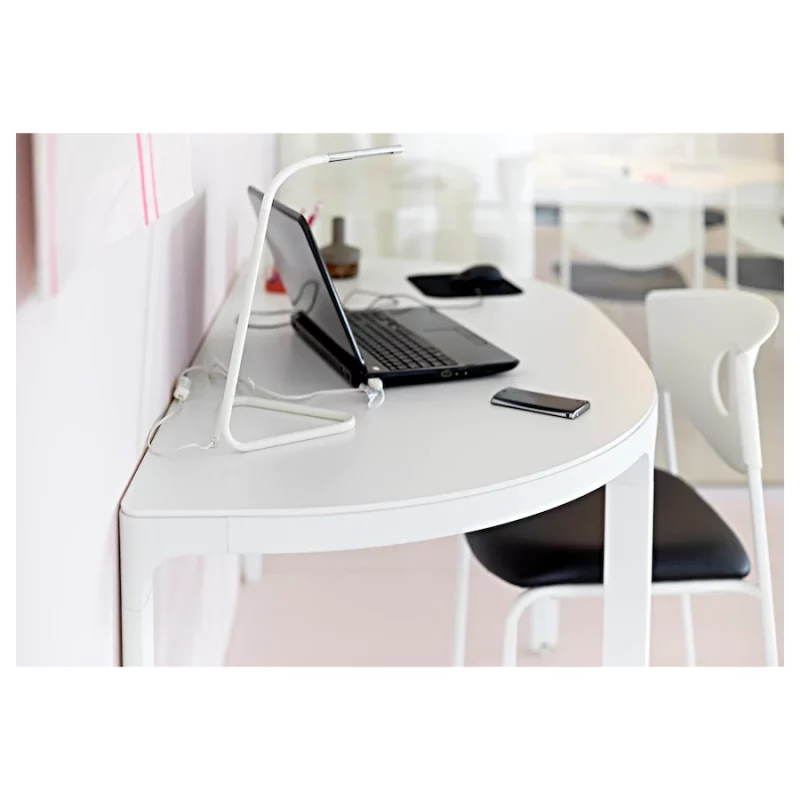 چراغ مطالعه سفید ایکیا HÅRTE با طراحی مدرن و جذاب مینیمالیستی، از طریق پورت USB رایانه و برق مستقیم روشن می شود.