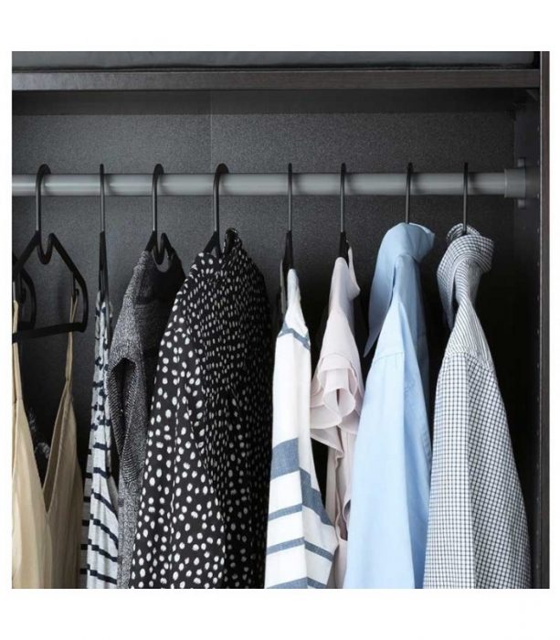 چوب لباسی مشکی ایکیا SPRUTTIG مناسب برای آویز شلوار ، آویز دامن و آویز پیراهن در یک چوب لباسی.