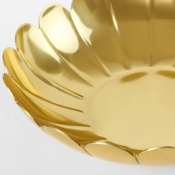 کاسه طلایی ایکیا AROMATISK سایز 15 یک کاسه کوچک به شکل گل که به خودی خود تزئینی است، اما برای پر کردن آن با میوه های خشک یا تنقلات نیز خوب است.