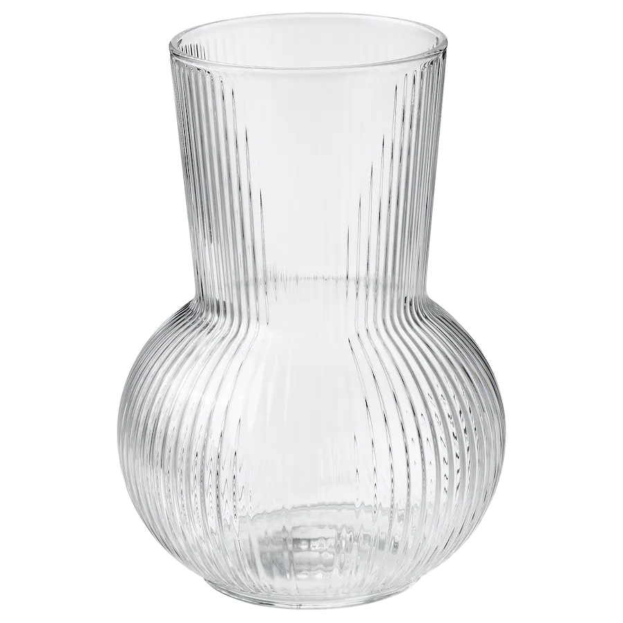 گلدان شیشه ای ایکیا PَADRAG شکلی گرد و ظریف با طراحی تمیز دارد که ترکیب آن با سایر محصولات آسان می کند.